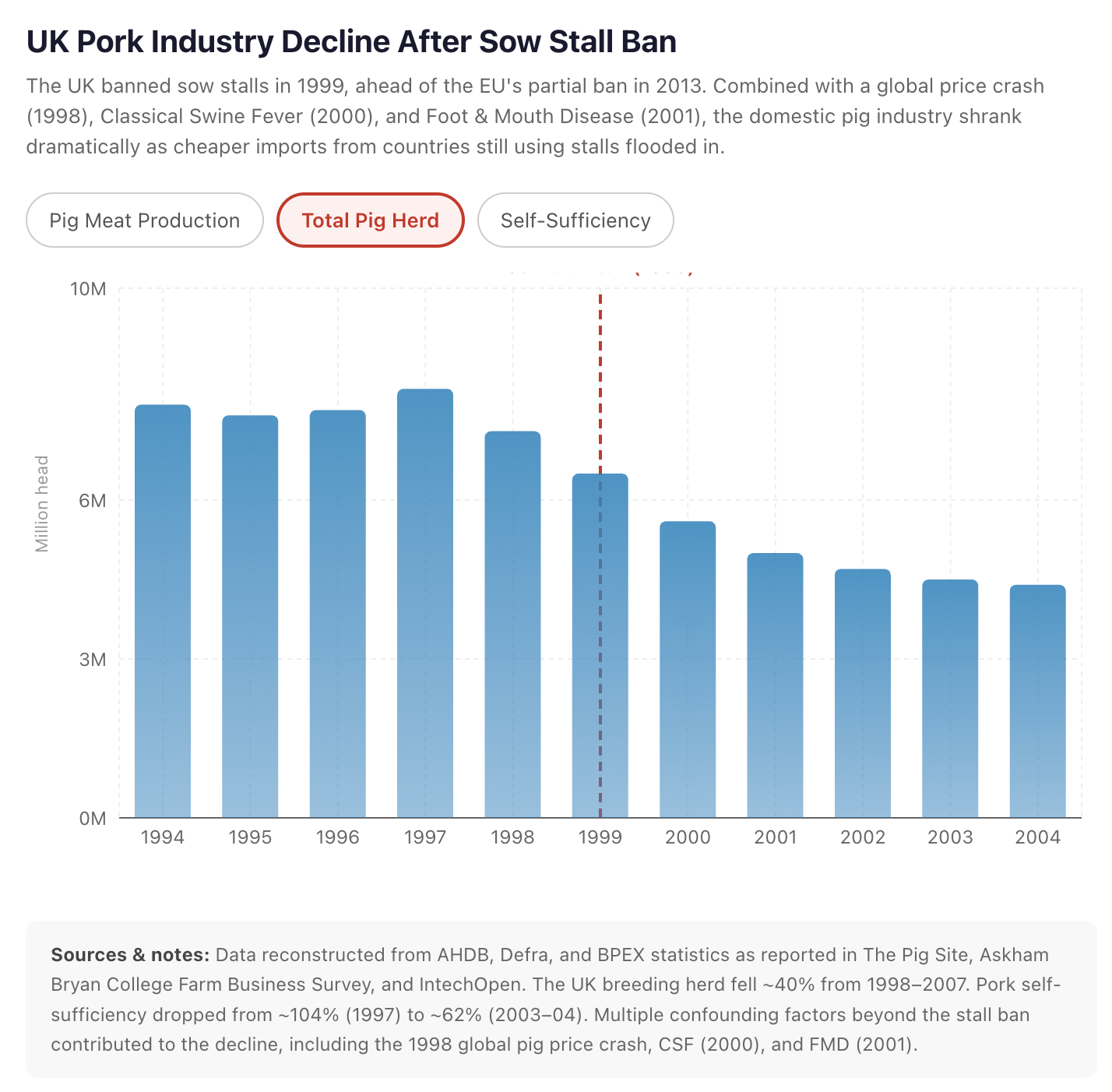 Collective action problems have a classic villain: the free rider who refuses to reform while everyone else does, then undercuts them on price. The best fix is regulation — you can’t defect from a properly-enforced law. But domestic producers rightly object that regulations rarely apply to imports, leaving them exposed to cheap low-welfare imports. After the UK and New Zealand banned gestation crates, both watched their pork industries shrink as cheaper imports from crated pigs flooded in.